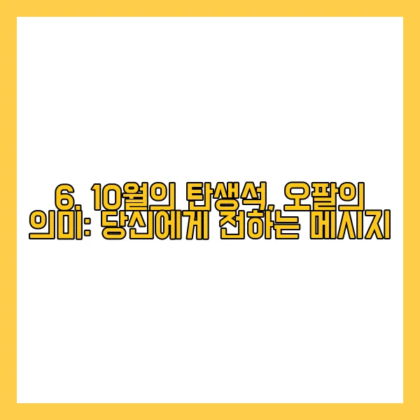 오팔은 희망, 행복, 순수, 창의성 등 다양한 의미를 담고 있습니다. 무지개처럼 다채로운 색상은 긍정적인 에너지와 영감을 불어넣어 주며, 삶에 활력을 더해준다고 믿어집니다. 10월에 태어난 사람들에게 오팔은 행운과 행복을 가져다주는 특별한 부적과 같은 존재입니다.