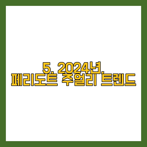 2024년 주얼리 트렌드는 바로 '개성'과 '자기표현'입니다! 페리도트 역시 이러한 트렌드를 반영하여 다채로운 디자인으로 우리를 찾아왔습니다. 클래식한 솔리테어 링부터 캐주얼한 팬던트, 그리고 페리도트와 다이아몬드, 혹은 다른 유색 보석을 조합한 화려하고 유니크한 디자인까지! 정말 다양한 스타일을 만나볼 수 있답니다. 자신의 취향과 스타일에 딱 맞는 페리도트 주얼리를 선택하여 여름철 싱그러운 매력을 한층 더해보는 건 어떨까요? 특히, 올해는 페리도트와 골드의 조합이 트렌드라고 하니 참고하세요!